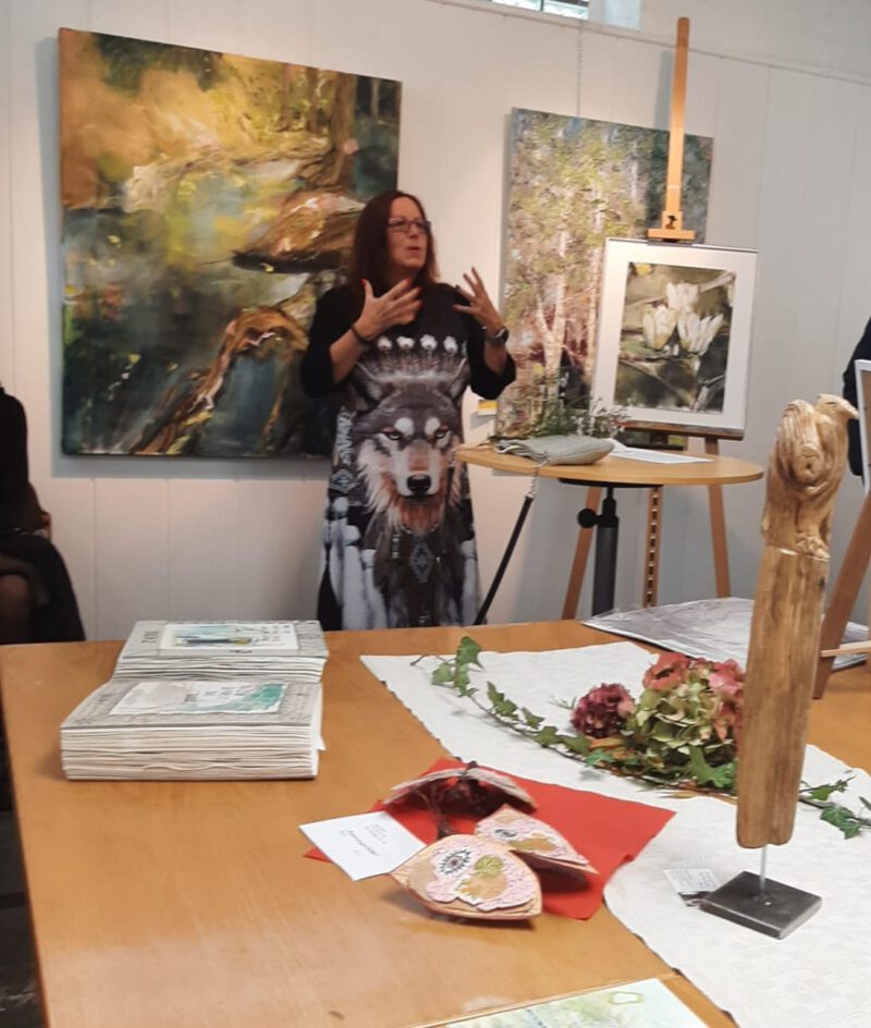 Natürlich haben wir die Künstlergemeinschaft auch in diesem Jahr unterstützt – die Natur ist ja ‚unser‘ Thema so Uschi Arens – stellvertretende Fraktionssprecherin. Sie betonte in ihren Worten, dass wir als Menschen ja letztlich auch Teil der Natur sind und schon von daher die besondere Verpflichtung haben, diese zu schützen. Neben etlichen aussagekräftigen Werken hat ihr besonders das ‚Blumenmädchen‘ Uschi gefallen.